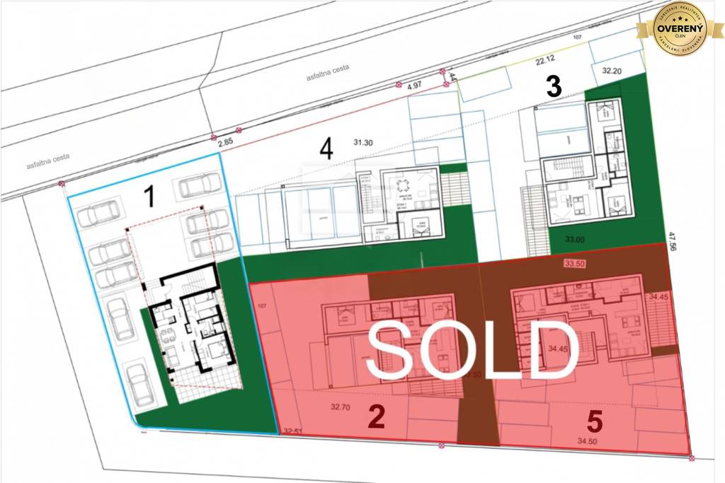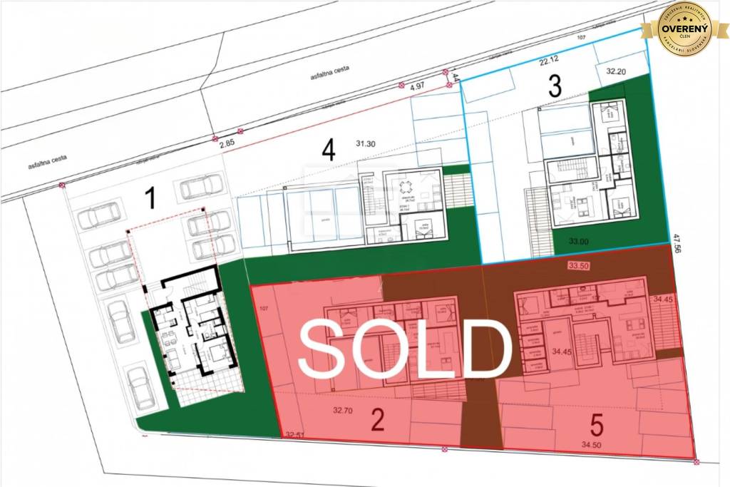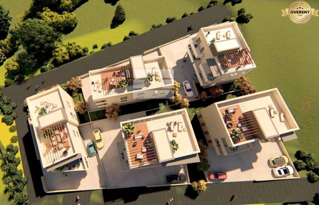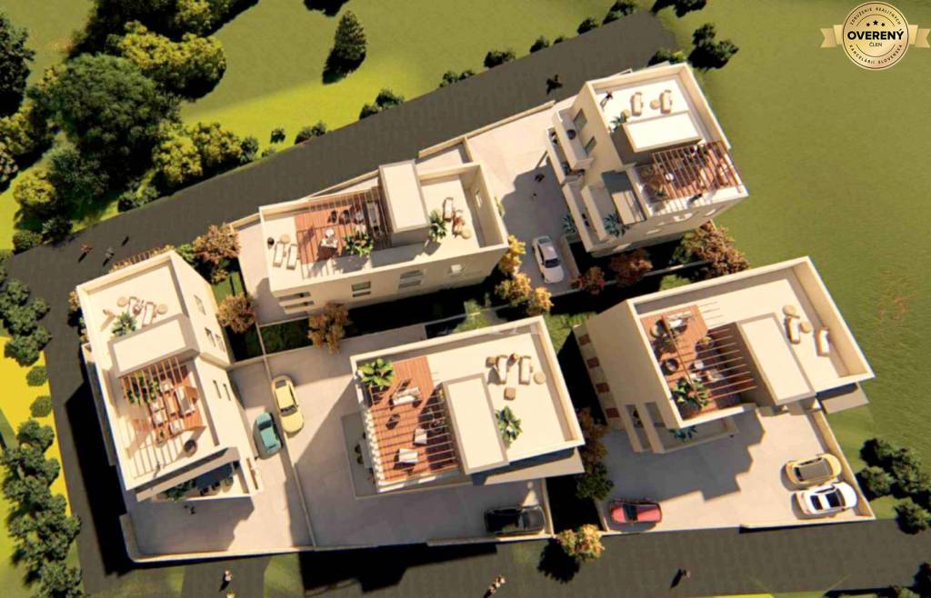 Apartmány na prízemí majú dvor, apartmány na 2.poschodí majú strešnú terasu. Ku každému apartmánu patria 2 parkovacie miesta.