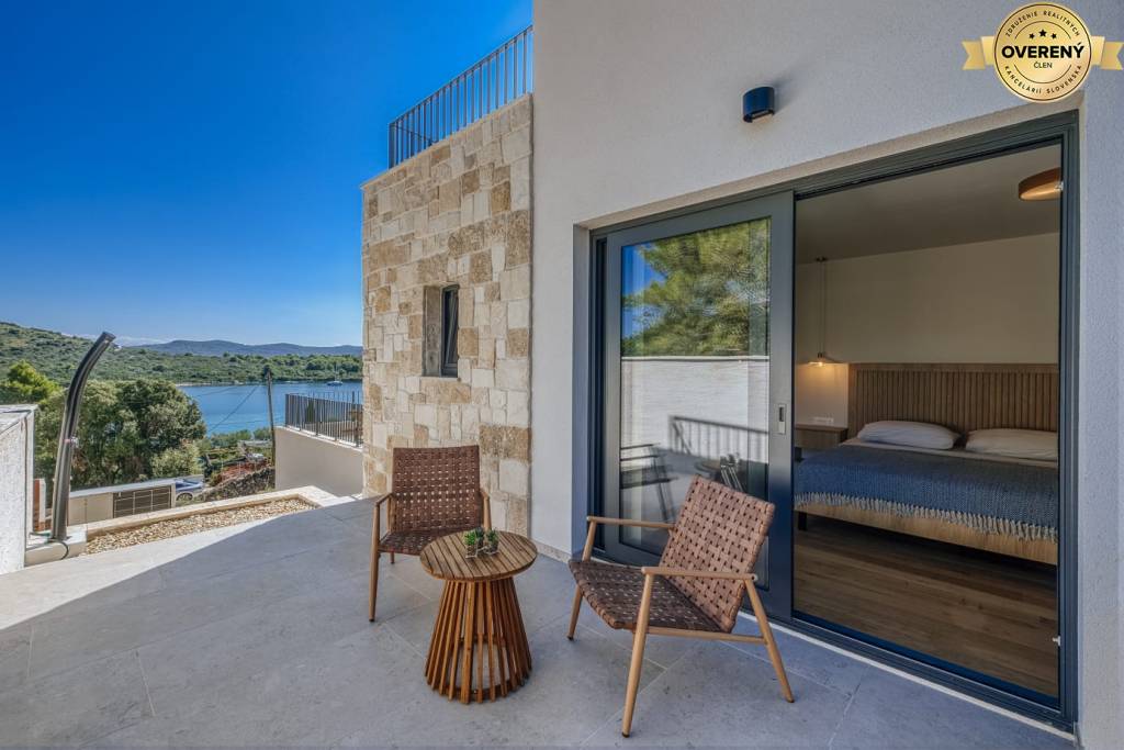 Na poschodí vily sú 2 spálne, 2 kúpeľne a terasa s krásnym výhľadom na more.
