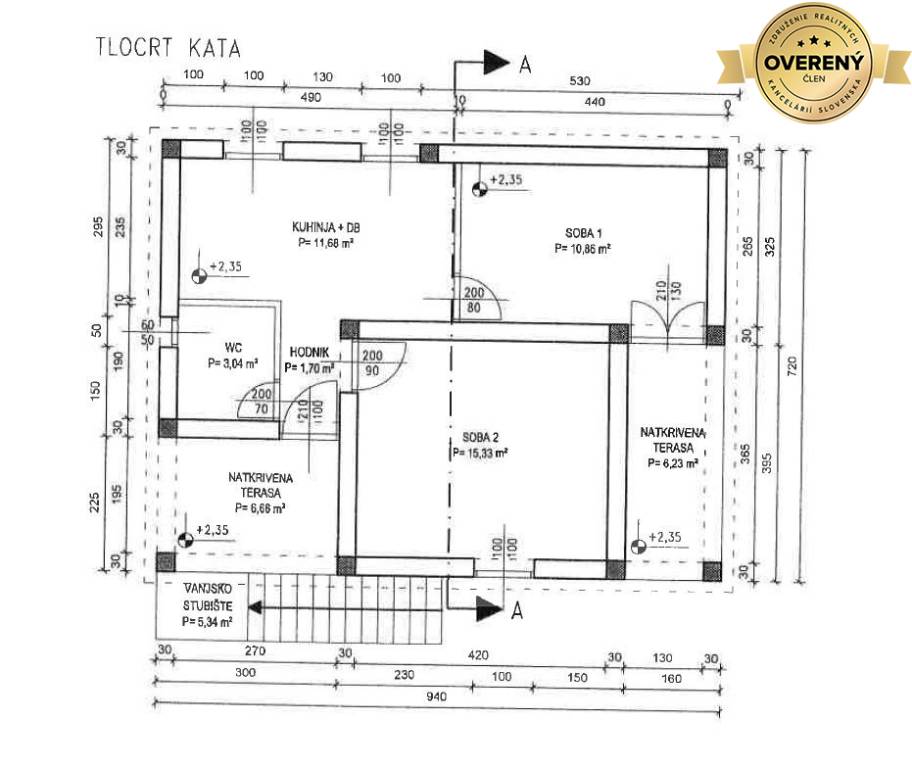 Úžitková plocha domu je 96,84 m2 + dve terasy. Dom je architektonicky rozdelený na dve samostatné bytové jednotky.
