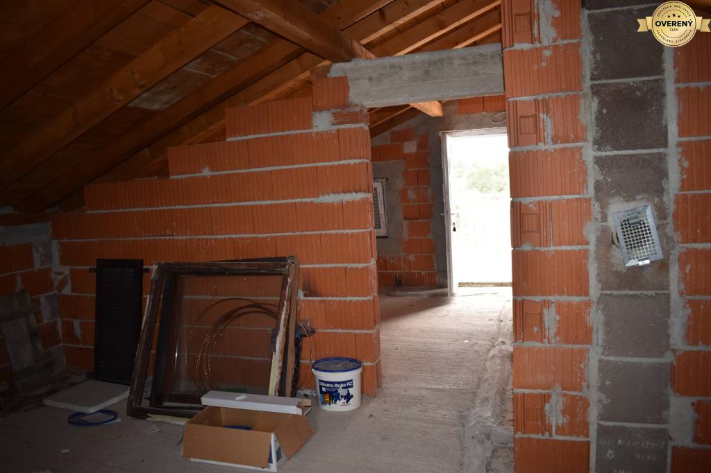 V podkroví sa nachádza nedokončený byt v štádiu holobyt.