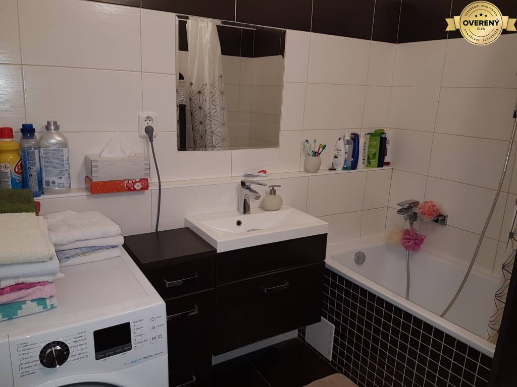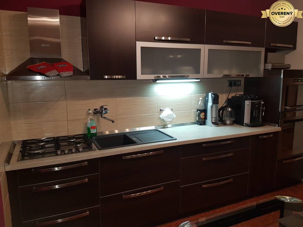 Byt je kompletne zariadený nábytkom a domácimi spotrebičmi: sporák, rúra na pečenie, mikrovlnka, umývačka riadu, chladnička s mrazničkou, TV, práčka.