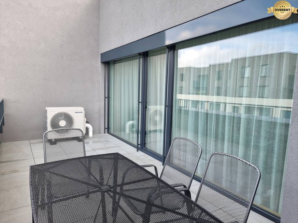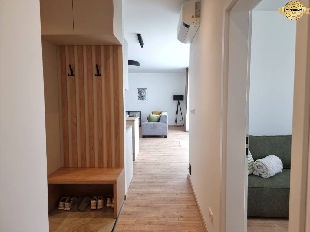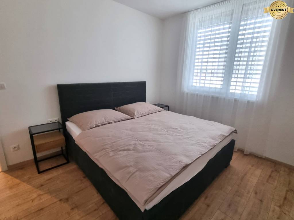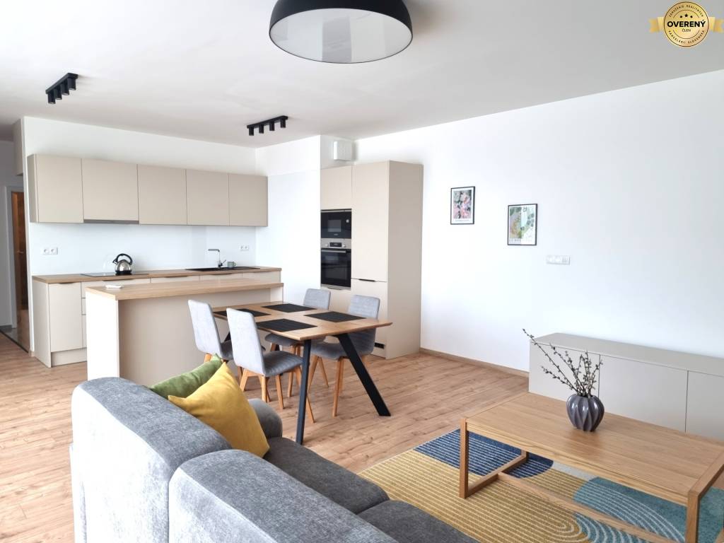 Byt je kompletne zariadený novým a moderným nábytkom a vybavený elektrospotrebičmi - chladnička s mrazničkou, práčka, mikrovlnka, varná doska, rúra na pečenie, umývačka riadu.