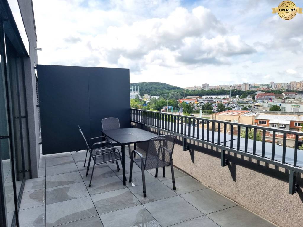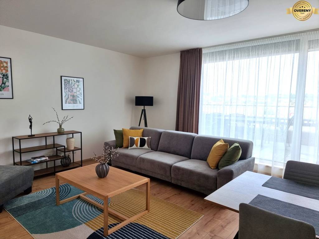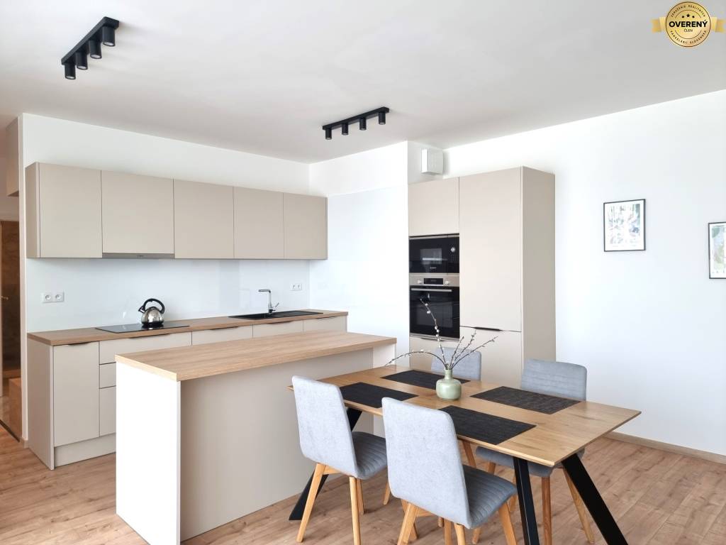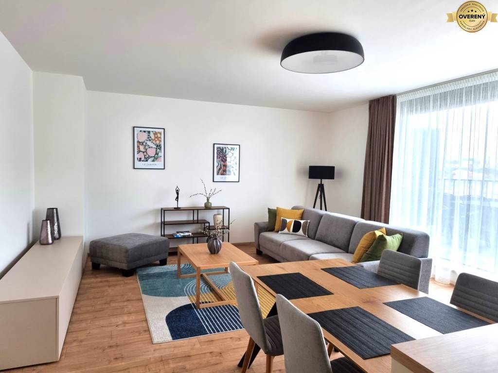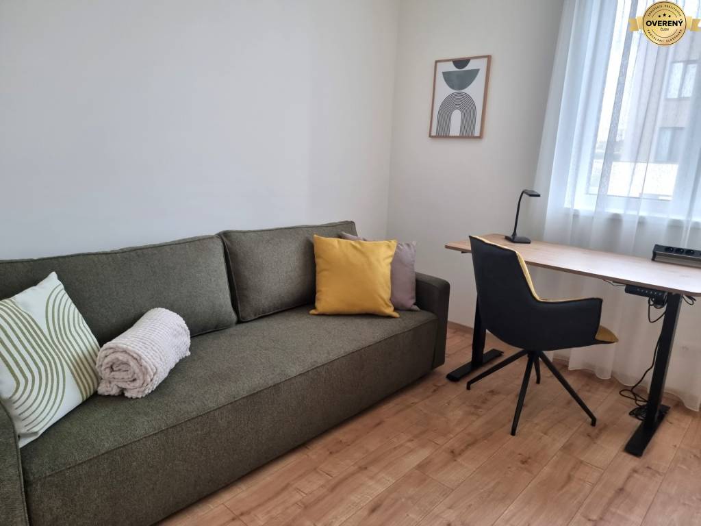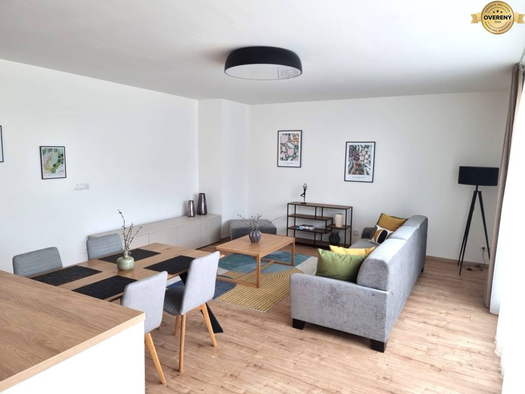 Byt je kompletne zariadený novým a moderným nábytkom a vybavený elektrospotrebičmi - chladnička s mrazničkou, práčka, mikrovlnka, varná doska, rúra na pečenie, umývačka riadu.