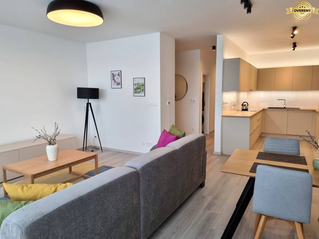 Byt je kompletne zariadený novým a moderným nábytkom, je vybavený elektrospotrebičmi - chladnička s mrazničkou, práčka, mikrovlnka, varná doska, rúra na pečenie, umývačka riadu.