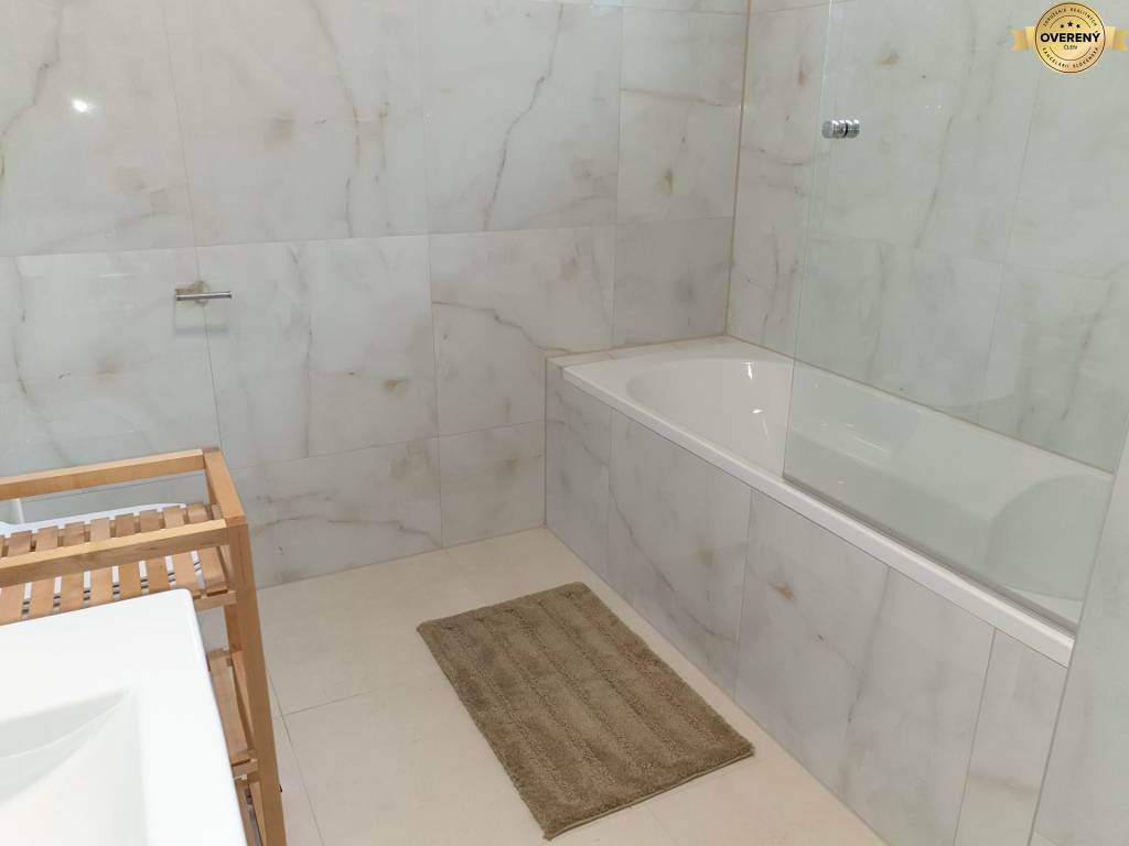 Byt je kompletne zariadený nábytkom a spotrebičmi - chladnička s mrazničkou, varná doska, rúra na pečenie, umývačka riadu, práčka, mikrovlnka, televízor.