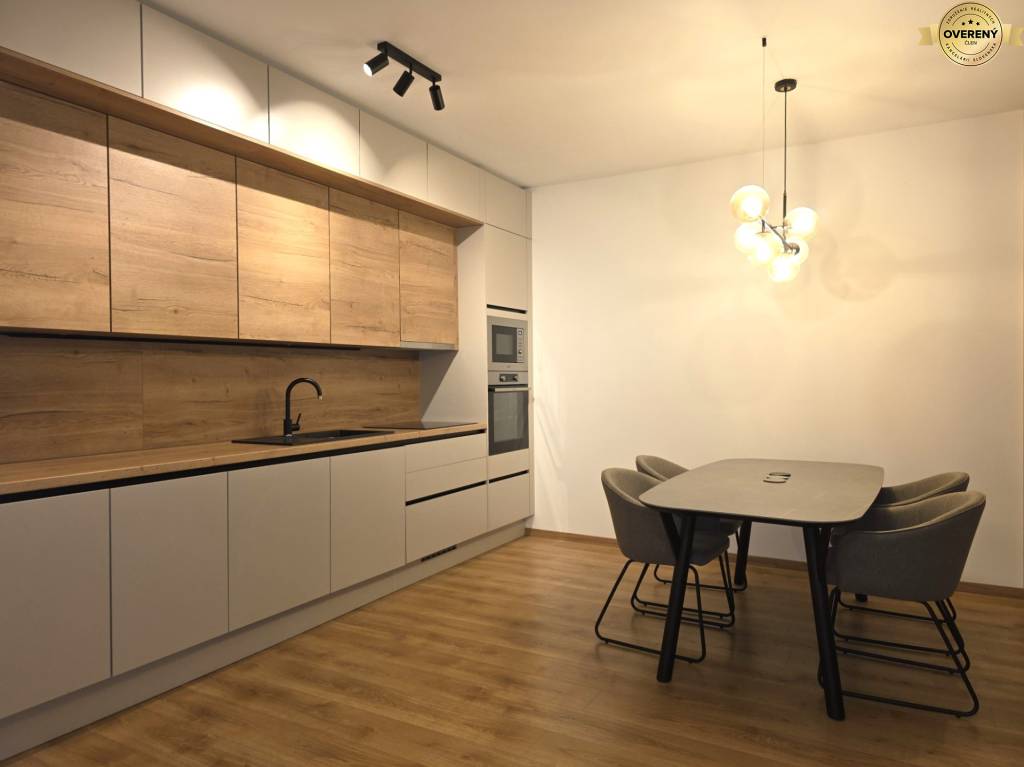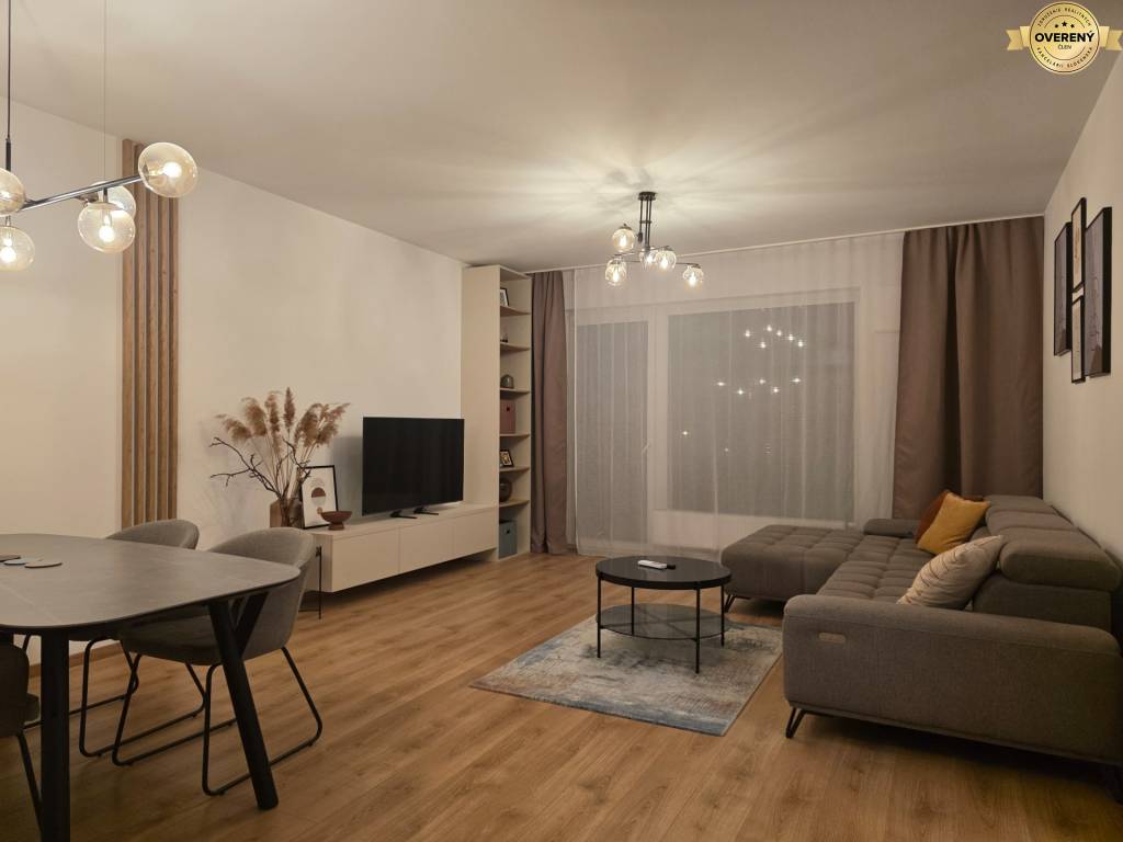 Byt je kompletne zariadený kvalitným nábytkom a vybavený spotrebičmi - práčka, umývačka riadu, rúra na pečenie, mikrovlnka, varná doska, chladnička s mrazničkou, televízor.