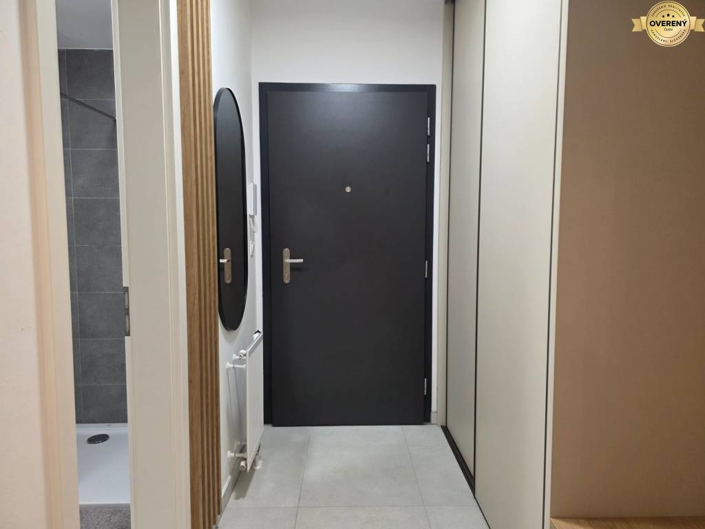 Byt má vstupnú chodbu, spálňu, kúpeľňu so sprchovacím kútom a WC a priestrannú obývačku spojenú s kuchynským kútom. Z obývačky je prístup na priestranný balkón.