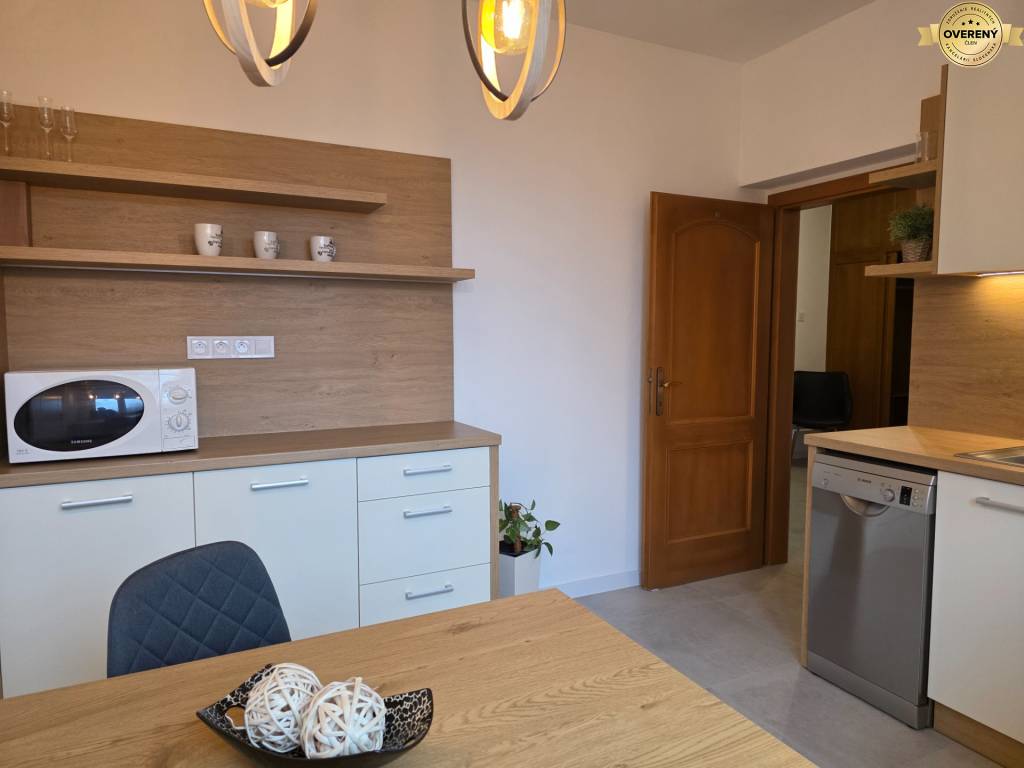 Byt sa prenajíma kompletne zariadený, vrátane elektrospotrebičov - elektrická varná doska, rúra na pečenie, umývačka riadu, chladnička s mrazničkou, mikrovlnka, 2 x televízor, práčka.