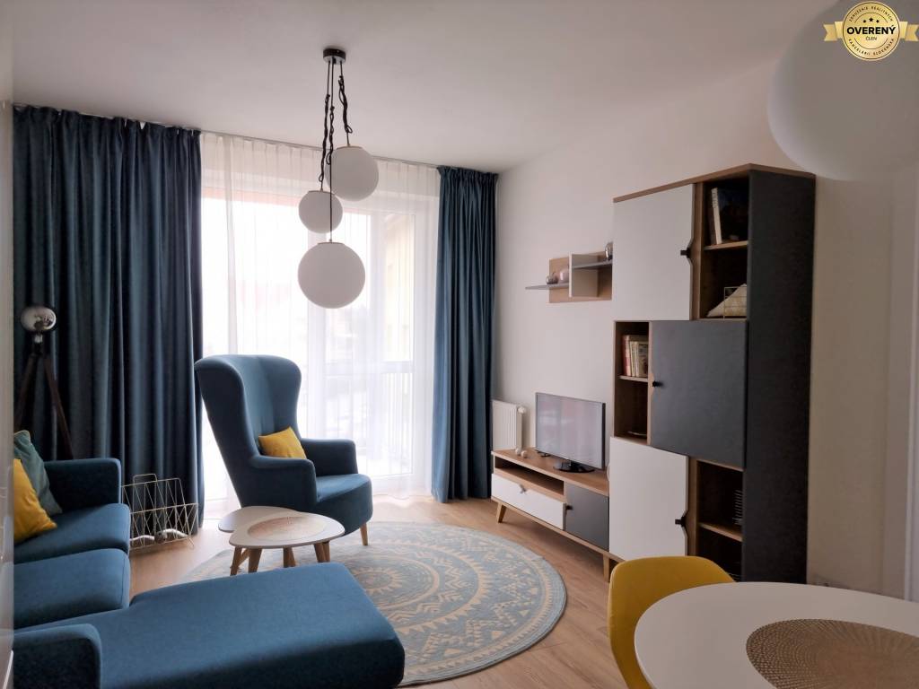 Byt sa prenajíma kompletne moderne zariadený a vybavený elektrospotrebičmi - plynový sporák, umývačka riadu, chladnička s mrazničkou, rúra na pečenie, mikrovlnka, televízor, práčka.